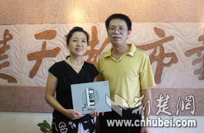 張女士在丈夫陪同下到楚天都市報(bào)領(lǐng)取獎品