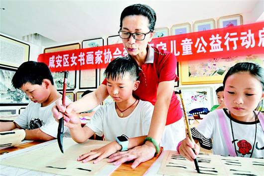 湖北日報訊 今年暑假,咸寧留守兒童有了新去處,該市一批書道精湛、和藹可親的女書法家免費(fèi)教他們學(xué)習(xí)書法。咸寧市咸安區(qū)女書畫家協(xié)會去年成立,一直堅持周末及寒暑假設(shè)立兩處書法授課點(diǎn),對周邊留守兒童免費(fèi)開放。(記者劉曙松 視界網(wǎng)李旻媛 攝)