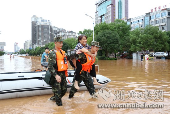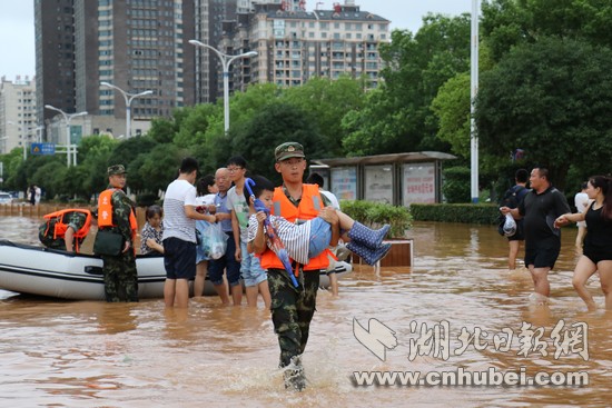 湖北日報網(wǎng)訊(通訊員何智利、何彥卿、記者江卉)8月11日20時至8月13日12時,咸寧地區(qū)普降大到暴雨,局部特大暴雨量達(dá)204.7毫米。強(qiáng)降雨導(dǎo)致城區(qū)咸寧大道、銀泉大道、玉泉街、書臺街等多條城市主干道嚴(yán)重積水,造成嚴(yán)重內(nèi)澇。8月13日13時許,武警咸寧支隊接到任務(wù)后,支隊長廖光明率50名官兵,出動車輛6臺、救援繩20根、皮劃艇3艘,轉(zhuǎn)移受災(zāi)群眾300余人,轉(zhuǎn)運(yùn)受損拋錨車輛20余臺,疏通城市主干道5條。截止13日18點(diǎn),武警官兵還在一線救援。