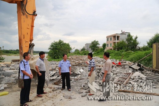 監(jiān)管人員依法拆除通城某存在環(huán)保隱患的養(yǎng)豬場(chǎng)