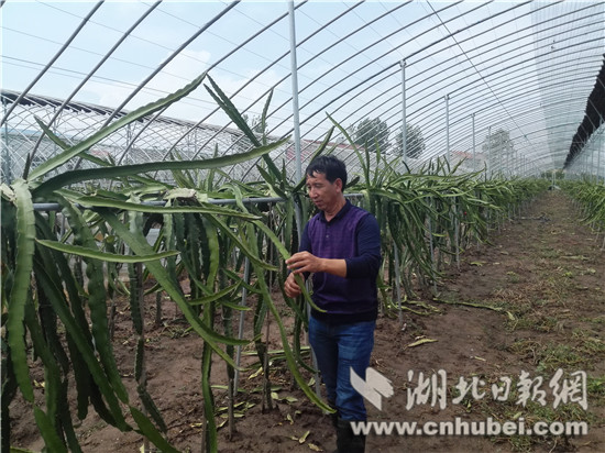 見(jiàn)到新農(nóng)蔬菜合作社負(fù)責(zé)人張?zhí)姇r(shí),他正在大棚里查看火龍果長(zhǎng)勢(shì)。“這是把臺(tái)灣大紅和海南蜜寶進(jìn)行嫁接培育的新品種,口感特別好,今年訂單已排滿(mǎn)了。”