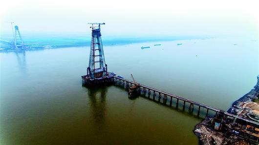 湖北日?qǐng)?bào)訊 12月4日,正在建設(shè)中的嘉魚長(zhǎng)江公路大橋南北主塔分別達(dá)到164米、158米,相當(dāng)于50多層樓高。大橋建設(shè)者開展勞動(dòng)競(jìng)賽,力爭(zhēng)在2018年春節(jié)前完成主塔封頂。咸寧市擁有128公里長(zhǎng)江岸線卻沒有一座長(zhǎng)江大橋,嘉魚長(zhǎng)江公路大橋2019年底建成通車后,將終結(jié)咸寧無長(zhǎng)江大橋的歷史。 (湖北日?qǐng)?bào)全媒記者 陳勇 通訊員 周漓 攝)