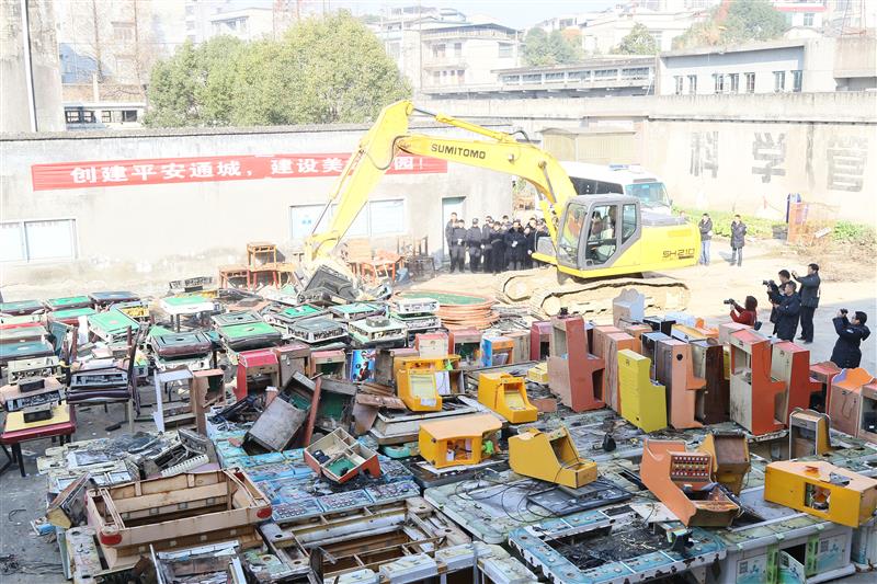 湖北日報(bào)訊(記者陳嶼、通訊員劉建平、吳忠勇)12月20日上午10時(shí)許,隨著指揮人員一聲號令,從通城各鄉(xiāng)鎮(zhèn)收繳的152臺涉賭電子游戲機(jī)、186臺麻將機(jī)被集中銷毀。