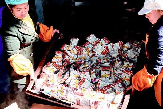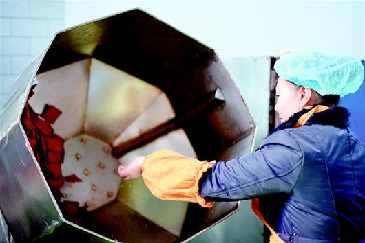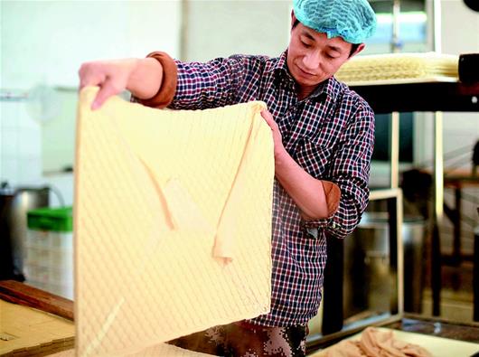 湖北日?qǐng)?bào)訊 通城麥?zhǔn)械穆槔备勺悦鞒家褌鞒形灏儆嗄甑臍v史,從民間傳統(tǒng)手工制作到現(xiàn)代流水線生產(chǎn),如今已形成了一定的規(guī)模。制作的原材料包括黃豆、香料、食鹽、雞精、辣椒油等,在保證傳統(tǒng)豆制品高營(yíng)養(yǎng)的同時(shí),運(yùn)用了特殊的鹵制技術(shù),融色香、味美、辣、脆于一體。其濃郁的農(nóng)家風(fēng)味成為大街小巷的一大特色小吃,熱銷廣東、浙江、江西及湖北各地。(視界網(wǎng) 劉建平 攝)