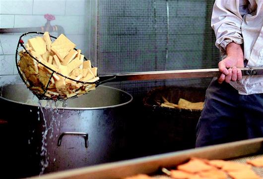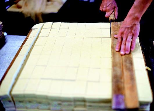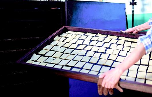 圖為:黃豆磨漿做成豆腐干