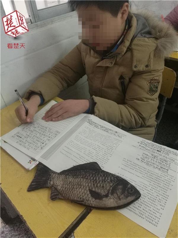 楚天都市報1月24日訊(記者 賀?。┮粋€穿著黃色衣服的學(xué)生正在語文試卷上奮力書寫,壓在試卷上的東西卻亮了:這不是一條鯽魚嗎?幾乎所有人看到這張照片的第一反應(yīng)就是:這孩子想“咸魚翻身”嗎?今晚,一張照片在不少人的朋友圈刷了屏。
