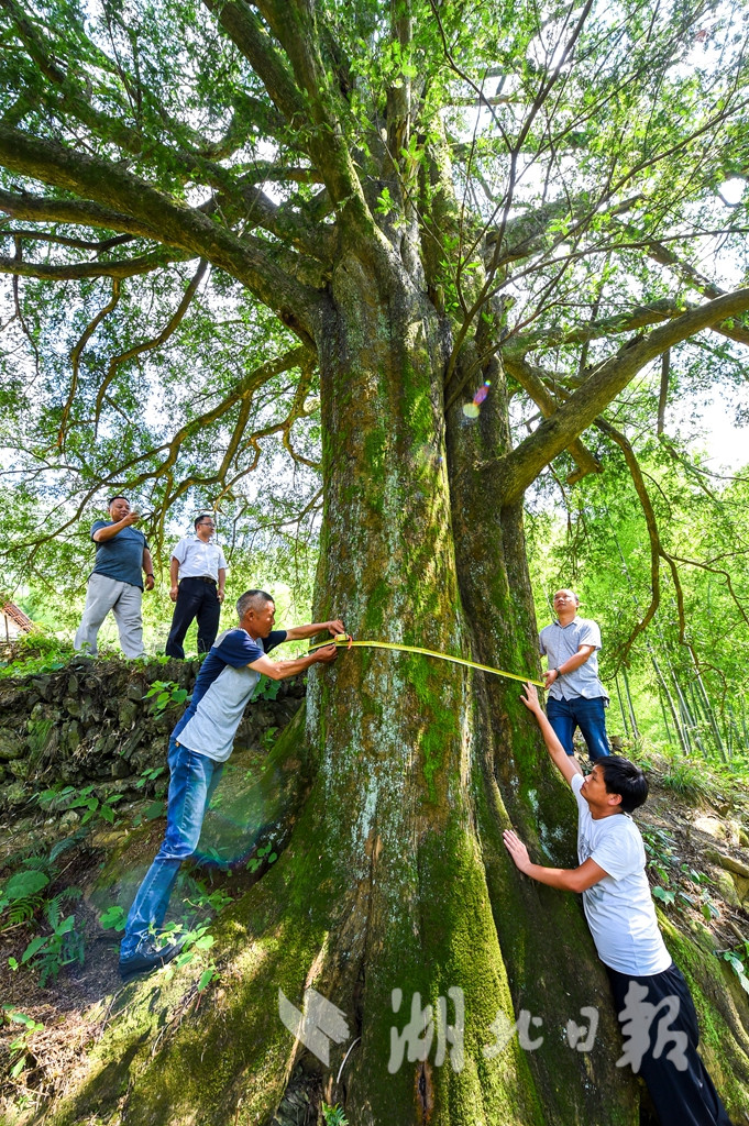 湖北日報訊(記者 陳勇 通訊員汪佳、黎志遠)7月16日,在崇陽縣港口鄉(xiāng)大東港村,兩棵古香榧樹歷經(jīng)千年仍枝繁葉茂、碩果累累,令游客驚嘆不已。這棵雌性香榧樹高25米,樹冠面積約有650平方米,胸圍4.9米,估測樹齡在980年至1200年之間。香榧,紅豆杉科,中國原產(chǎn)樹種,是世界上稀有的經(jīng)濟樹種。崇陽縣林業(yè)部門在幕阜山南坡發(fā)現(xiàn)這兩株古香榧樹,認為有很高的科研和經(jīng)濟價值,列入一級保護的古樹名單。