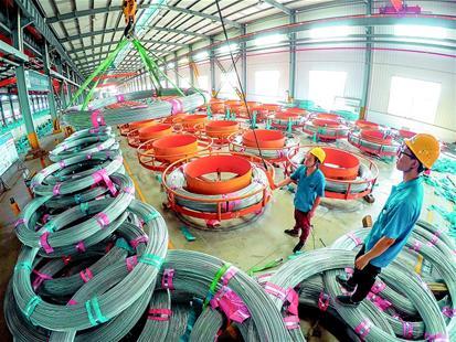 8月10日,在嘉魚經(jīng)濟(jì)開發(fā)區(qū)官橋工業(yè)園內(nèi),湖北歐維姆纜索制品有限公司員工在制造最后一批武漢楊泗港長江大橋的主纜索股。楊泗港長江大橋懸索橋跨度在國內(nèi)排名第一、世界排名第二。每條主纜由271根索股組成,每根索股長度為2836米、重量約62噸,每根索股由91根鋼絲組成,其鋼絲直徑更大、強(qiáng)度更高,在國內(nèi)屬首次應(yīng)用。(湖北日?qǐng)?bào)全媒記者 陳勇通訊員謝燕子攝)