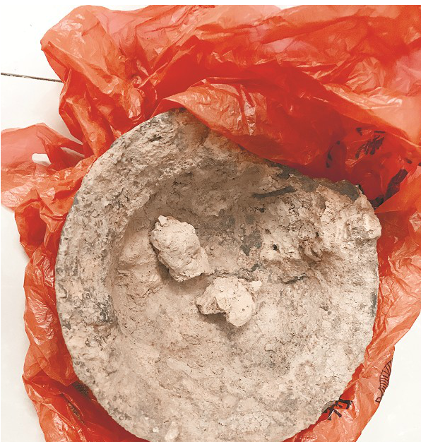 孫師傅說(shuō),當(dāng)村民趕過(guò)去的時(shí)候,墓穴已被挖開,不少周邊村民都前來(lái)圍觀,有人還在墓穴周圍找到了一些銅錢。他們當(dāng)即報(bào)警,當(dāng)日下午,崇陽(yáng)縣博物館館長(zhǎng)匡文、金塘派出所刑偵人員趕到現(xiàn)場(chǎng)進(jìn)行了勘查。據(jù)目擊村民介紹,盜挖古墓的是該村的宋某和退休人員盧某,共挖出了6件文物。當(dāng)天,在警方調(diào)查時(shí),宋某交出了一個(gè)破罐、一個(gè)鐵器等物件。