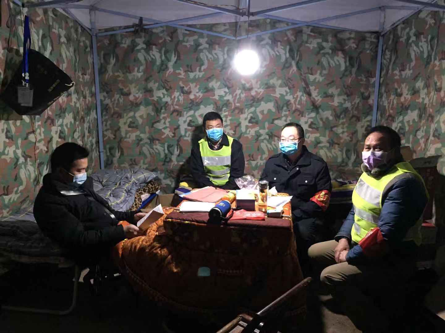 義源村的另一處臨時(shí)關(guān)卡點(diǎn),16名黨員干部憑著幾把凳子,幾床被褥堅(jiān)守陣 地,從1月25日開(kāi)始, 24小時(shí)輪班執(zhí)勤,對(duì)外來(lái)人員車(chē)輛進(jìn)行勸返消毒,嚴(yán)防死守, 為全村疫情防控工作構(gòu)筑了一道牢固的安全網(wǎng)、防護(hù)欄。