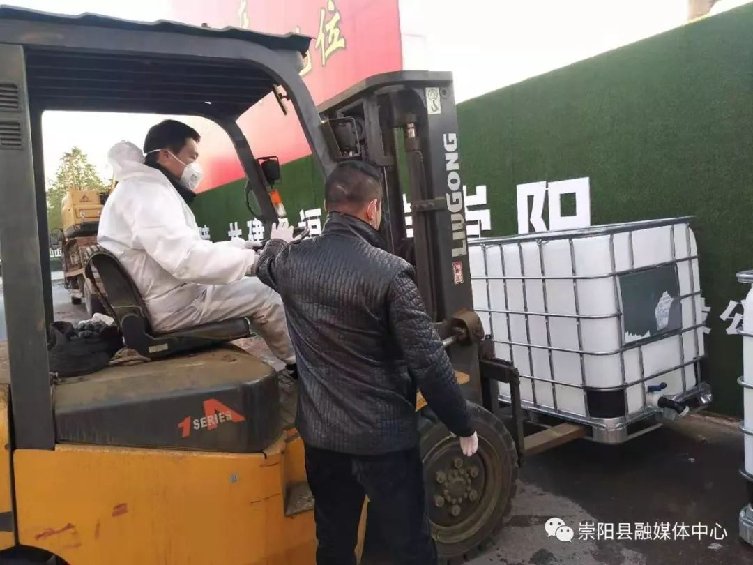 1月30日,河北省唐山瑞隆交通設(shè)施有限公司董事長(zhǎng)郭俊章決定向崇陽(yáng)縣捐贈(zèng)10噸醫(yī)用酒精,并約定在河南省信陽(yáng)市交接。當(dāng)晚9時(shí),石強(qiáng)緊急聯(lián)系好拖運(yùn)車輛,并親自帶隊(duì),帶領(lǐng)?;陕毠ひ煌瑓⒓涌缡⊥线\(yùn)任務(wù)。