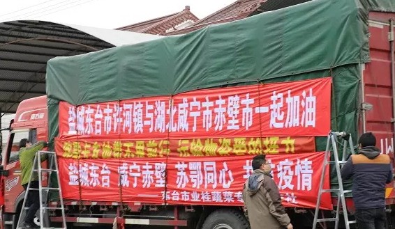 “同志,您好,我們是江蘇鹽城東臺(tái)的,我們拖運(yùn)來了捐贈(zèng)蔬菜,請(qǐng)問……”