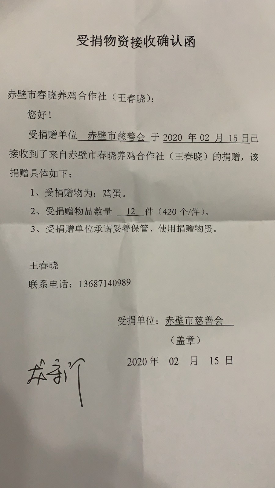 據(jù)悉,赤壁市意豐農(nóng)業(yè)合作社捐贈(zèng)大米3噸,赤壁市春曉養(yǎng)雞合作社捐贈(zèng)雞蛋5040枚,赤壁市浚龍養(yǎng)雞場捐贈(zèng)雞蛋7200枚。