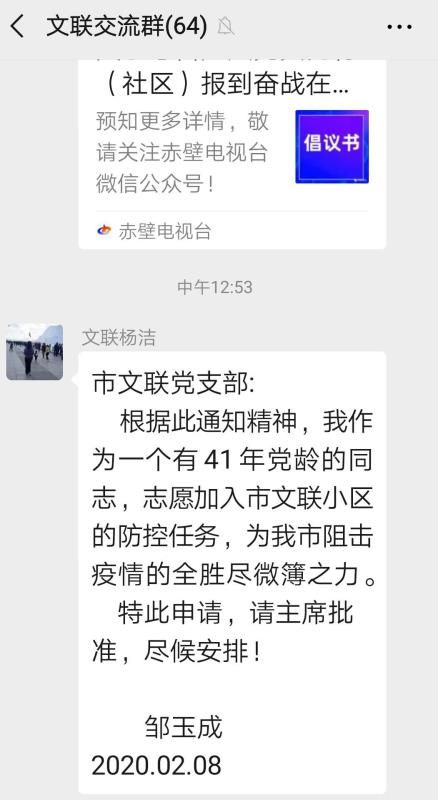 “我作為一個有41年黨齡的同志,志愿加入市文聯(lián)小區(qū)的防控任務(wù),為我市阻擊疫情的全勝盡微薄之力……”