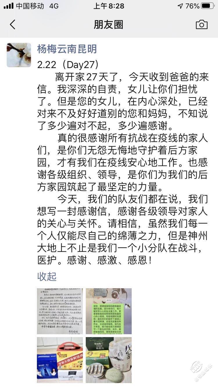 今天,我們的隊(duì)友們都在說,我們想寫一封感謝信,感謝各級(jí)領(lǐng)導(dǎo)對(duì)家人的關(guān)心與關(guān)懷。請(qǐng)相信,雖然我們每一個(gè)人僅能盡自己的綿薄之力,但是神州大地上不止是我們一個(gè)醫(yī)護(hù)小分隊(duì)在戰(zhàn)斗。感謝、感激、感恩!