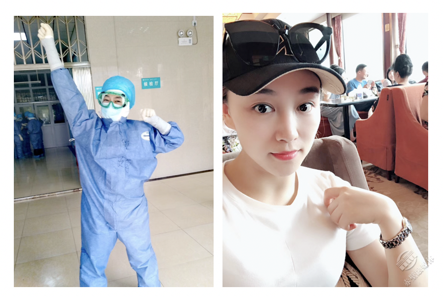 袁玲,市中醫(yī)醫(yī)院內(nèi)二科護(hù)師:讓我先上!理由很簡(jiǎn)單,第一,我年輕,身體好;第二,不想落在已赴一線老公的后面(偷笑)!
