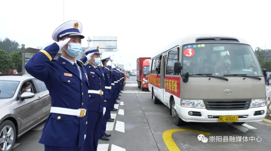 沿途,“千里逆行助崇陽 平平安安回家鄉(xiāng)”“風(fēng)雨與共 守望相助 攜手奮戰(zhàn) 感恩有你” “云南援崇醫(yī)療隊醫(yī)護人員恩情 崇陽人民永久于心”等紅色條幅分外鮮艷,街道兩旁的群眾揮舞著國旗,為支援崇陽的云南醫(yī)療隊送別。人群中,“謝謝白衣天使”“英雄一路順風(fēng)”的聲浪此起彼伏,群眾用最真誠樸實的話語表達了對白衣天使們由衷地感謝。