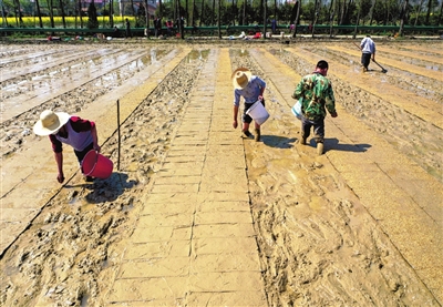3月18日,咸安區(qū)俊敏種植專(zhuān)業(yè)合作社的社員們正忙著鋪秧盤(pán)、撒谷種。日前隨著氣溫回升,在做好新冠肺炎疫情防控的基礎(chǔ)上,咸安區(qū)搶抓農(nóng)時(shí)開(kāi)展早稻春播生產(chǎn),組織當(dāng)?shù)厮膫€(gè)專(zhuān)業(yè)合作社搭建中型水稻集中育秧基地2個(gè)、小型水稻集中育秧基地2個(gè),通過(guò)規(guī)?;?、標(biāo)準(zhǔn)化集中育秧提高種植效率,為村民提供水稻集中育秧和機(jī)械化插秧一條龍托管服務(wù),助力當(dāng)?shù)剞r(nóng)民早稻春播。