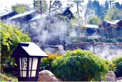 在這里,70多個(gè)溫泉泡池高低錯(cuò)落,或鑲嵌于園林湯院中,或散落于戶(hù)外溫泉區(qū)。