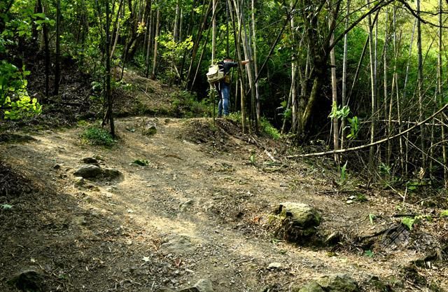 “馬上登頂了,路更險峻,我上前頭帶路,大家注意安全?!闭缋现念A警,從“虎歇坪”至“天鷹門”登金峰頂?shù)穆?,不算遠,但奇險,一腳寬的沙石路下便是懸崖,“我們現(xiàn)在眼望的‘綠水青山’,正是當年革命先烈們在險峻金峰山的奮戰(zhàn)換來的?!?/p>