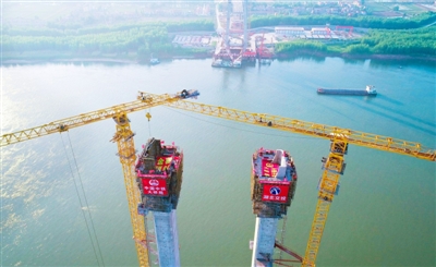 4月29日10點08分,隨著最后一方混凝土澆筑完成,赤壁長江大橋主塔全部封頂。盡管疫情延誤了兩個月的工期,但中鐵大橋局赤壁長江大橋項目部一手抓防疫一手抓復(fù)工,僅比疫情前原計劃時間延遲一個月完成主塔封頂,為大橋如期建成通車贏得寶貴時間。