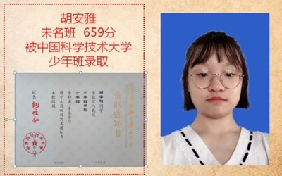 8月12日,從省招辦傳來喜訊:來自全國各地的129名“天才少年”來合肥參加中國科學技術大學“少年班”復試的角逐,共計錄取48名考生。湖北僅錄4人,咸高獨占3人!余亦可、陳龍、胡安雅同學經(jīng)過嚴格挑選,脫穎而出,被中科大“少年班”錄?。菚阃瑢W被中科大“少創(chuàng)班”錄?。」?、劉瑞同學被空軍航空大學錄??!周子吉吉、饒冶、朱紫珩、趙子廉、施熠被清華大學、上海交大、復旦大學、浙江大學錄取。