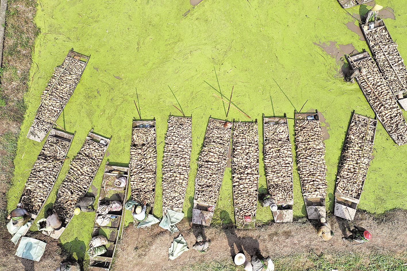 10月13日,嘉魚縣陸溪鎮(zhèn)農(nóng)民趁著晴好天氣挖藕。這些蓮藕經(jīng)嘉魚鴻富農(nóng)產(chǎn)品有限公司加工后,將出口至東南亞和北美等地區(qū)。嘉魚縣蓮藕、蓮子、藕帶是區(qū)域特色明顯的優(yōu)勢農(nóng)產(chǎn)品。近年來,嘉魚縣把發(fā)展蓮藕作為調(diào)整農(nóng)業(yè)產(chǎn)業(yè)結(jié)構(gòu)、增加農(nóng)民收入的重要途徑。目前,全縣蓮藕種植面積4.85萬畝,2019年全縣蓮藕產(chǎn)業(yè)實現(xiàn)綜合產(chǎn)值5.6億元。
