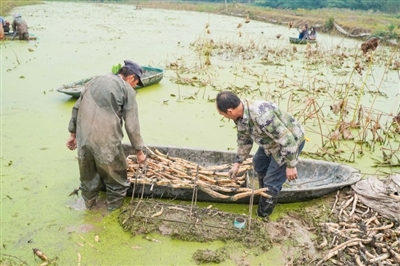 10月26日,嘉魚縣陸溪鎮(zhèn)界石村鴨兒湖養(yǎng)殖專業(yè)合作社里,負責人龔木前正和工人們一起忙著挖藕、稱重、清洗、包裝。龔木前是一名退役軍人,2009年,龔木前從部隊轉(zhuǎn)業(yè)后回鄉(xiāng)創(chuàng)業(yè),承包了村里50畝荒湖種野藕。經(jīng)過幾年時間的發(fā)展,他成立了農(nóng)業(yè)合作社,把藕塘面積擴大到300多畝。近些年,通過他的努力,他家的野藕通過電商遠銷全國各地,高峰期時,每天可以接到200余張訂單。 通訊員 耿海軍 杜瑞 攝