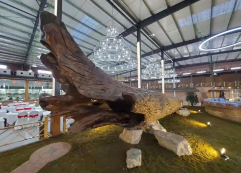 轉(zhuǎn)機出現(xiàn)在2017年11月,木垸村民挖池塘時,發(fā)現(xiàn)了一顆樹齡超過2000年、專家鑒定沉睡地底3000年的稀有金絲楠陰沉木。這棵根部直徑約3.3米,樹干最粗胸圍約5.5米,殘長16米,價值連城的金絲楠被尊稱為“神木”,后建起“東方神木館”。