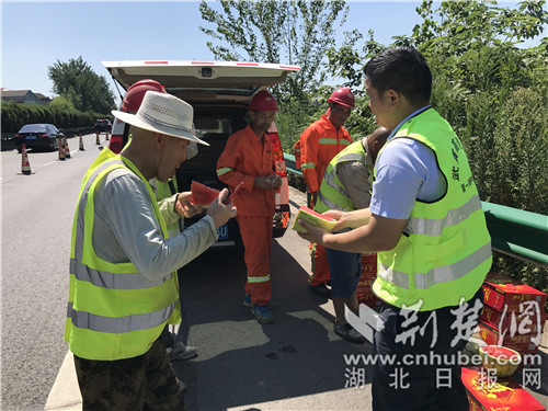 據(jù)悉,為確保高溫天氣的交通安全,武黃運營公司不僅為司乘帶來消暑飲品,還及時對高速路路面上的坑槽病害進行排查、修復(fù)路面交安設(shè)施、維護道路的清潔,保障高速公路的安全暢通。