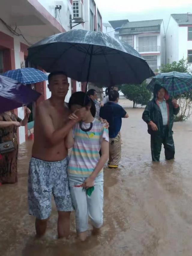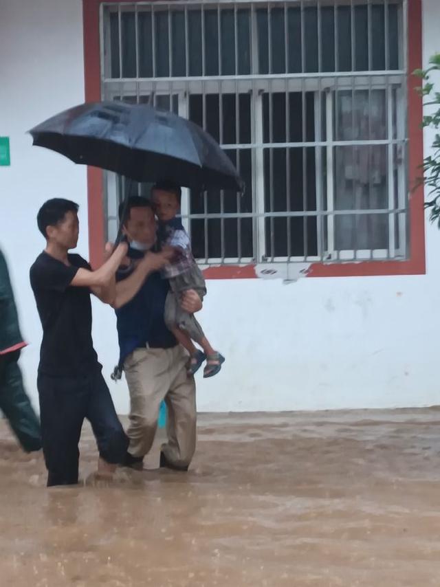轉(zhuǎn)移小娃娃,一人撐傘、一人抱著。年紀(jì)大的、腿腳不便的,直接背著。背不動的,便幾個人一起抬。