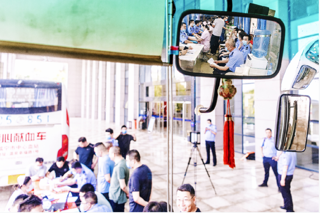 一時間,從局黨委班子成員身先示范,到“白襯衣”一馬當(dāng)先,再到“藏青藍”接踵而至。不分男女,不論老幼,歷時7小時的獻血活動,不斷有民警持續(xù)加入。有的剛從護校崗位趕回,有的從交通高峰崗趕回,有的篤信自己過硬的身體素質(zhì)執(zhí)意多獻一些……