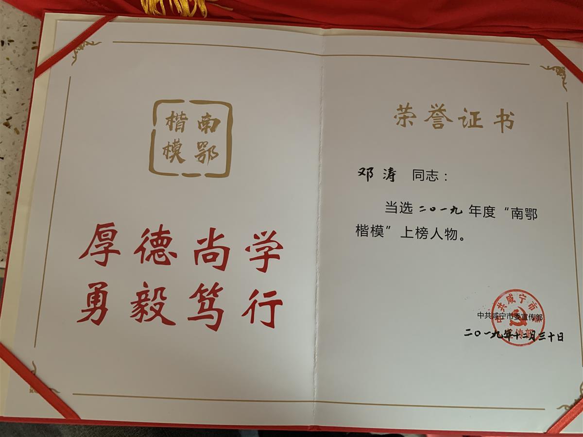湖北省道德模范、“南鄂楷?!?、咸寧市見義勇為先進(jìn)個(gè)人、通山縣見義勇為先進(jìn)個(gè)人……翻開鄧濤的一項(xiàng)項(xiàng)榮譽(yù),妻子陳娜的眼眶開始濕潤起來。
