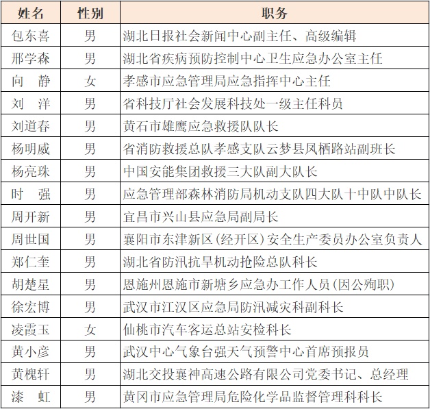 第二屆“荊楚楷?!ぷ蠲缿?yīng)急人”宣傳展示活動(dòng)候選人名單