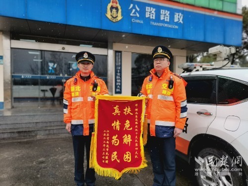 江蘇南通男子送錦旗點贊湖北高速路政暖心解圍 通訊員 供圖