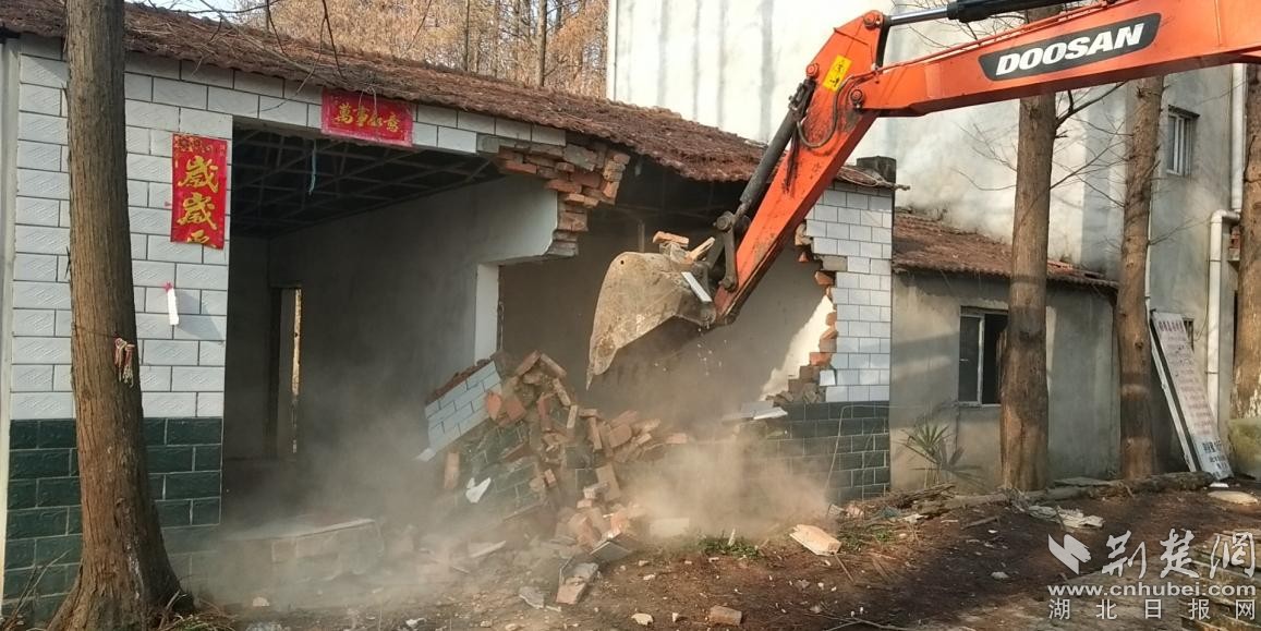 朱湖辦事處項(xiàng)目建設(shè)區(qū)正在進(jìn)行房屋拆除。萬清平 供圖