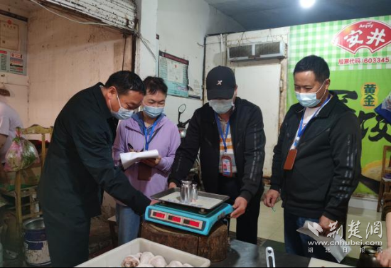 在南荷集貿(mào)市場,潛江分院計(jì)量人員對市場在用的32臺(tái)電子計(jì)價(jià)秤進(jìn)行了現(xiàn)場檢查,主要檢查了電子計(jì)價(jià)秤的稱量是否準(zhǔn)確,水果蔬菜、米、面等生活必需品的稱重計(jì)量器具配備是否規(guī)范,并督促引導(dǎo)經(jīng)營者誠實(shí)守信、守法經(jīng)營。