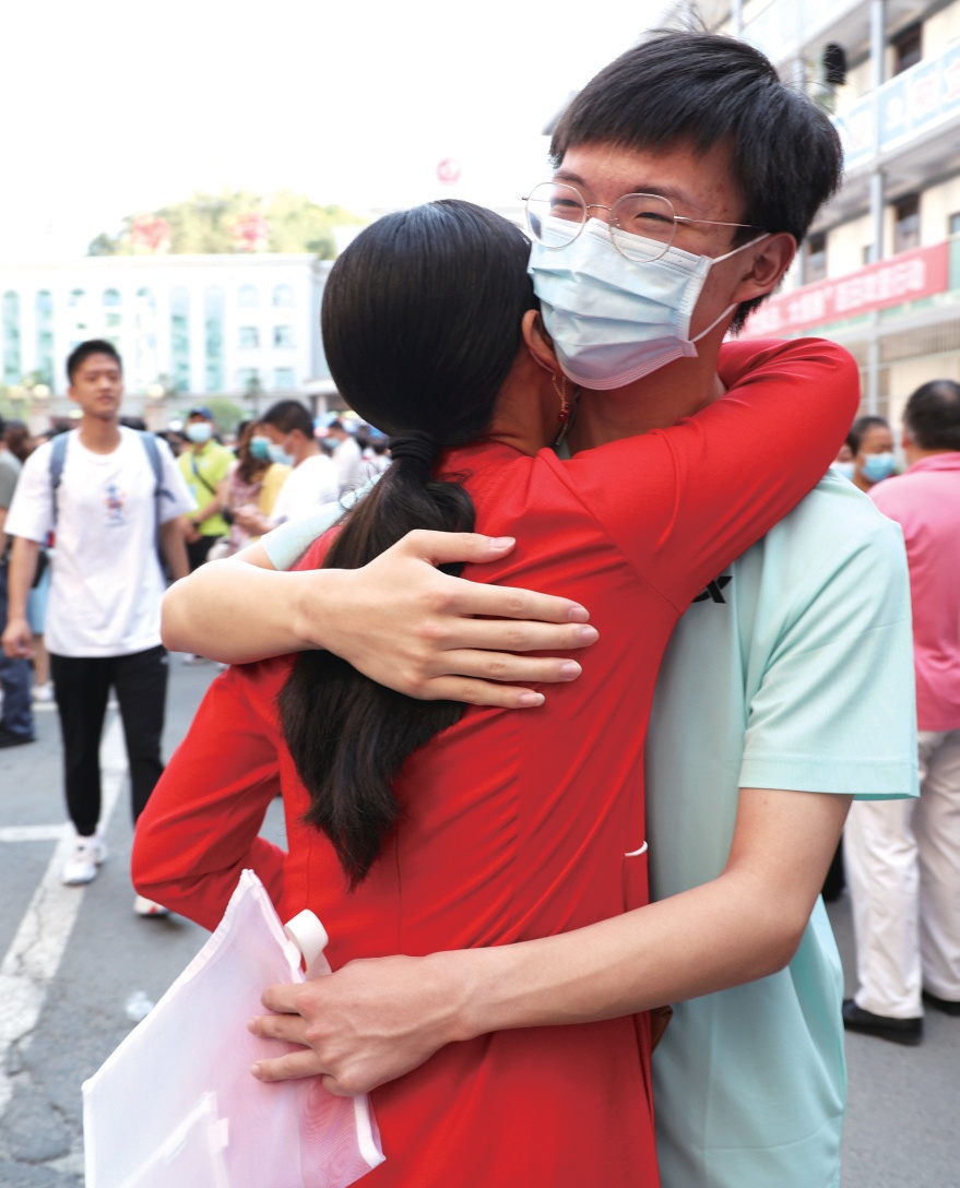 考場里,是對考生12年勤學(xué)苦讀的檢驗(yàn);考場外,是親人們的牽掛與期盼。臨進(jìn)考場前,走出考場后,一個(gè)緊緊的擁抱、一個(gè)自信的手勢、一個(gè)會(huì)心的微笑,舉手投足間都是滿滿的愛。文、圖/記者 張啟國 劉成臣