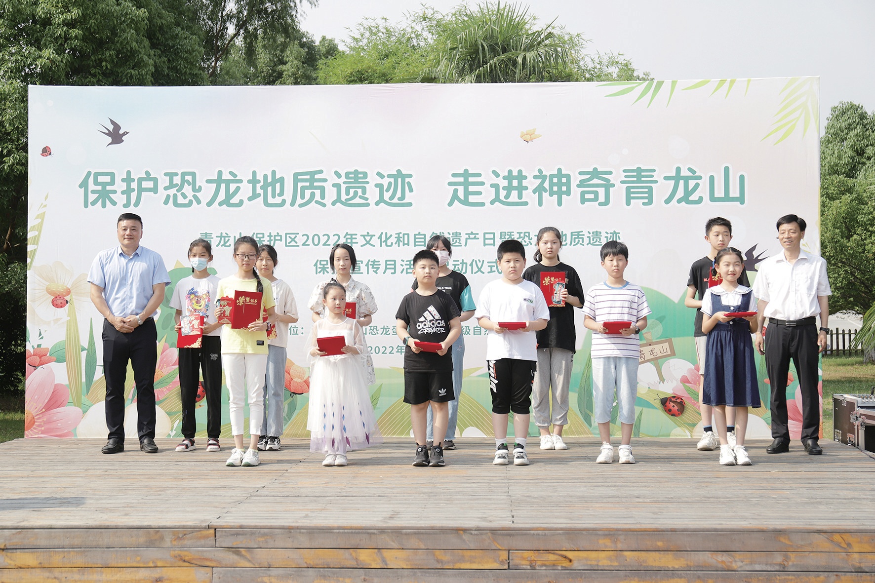 本報訊 6月11日是我國第6個文化和自然遺產(chǎn)日。為了更好保護青龍山恐龍蛋化石群這一世屬罕見的自然遺產(chǎn),喚醒大家珍愛地球、保護環(huán)境的意識,當日,湖北青龍山管理局在青龍山地質(zhì)公園舉行了2022年文化和自然遺產(chǎn)日暨恐龍地質(zhì)遺跡保護宣傳月活動啟動儀式。來自十堰日報社小記者團、媽媽幫社群的200余位學生、家長朋友在現(xiàn)場參加活動。