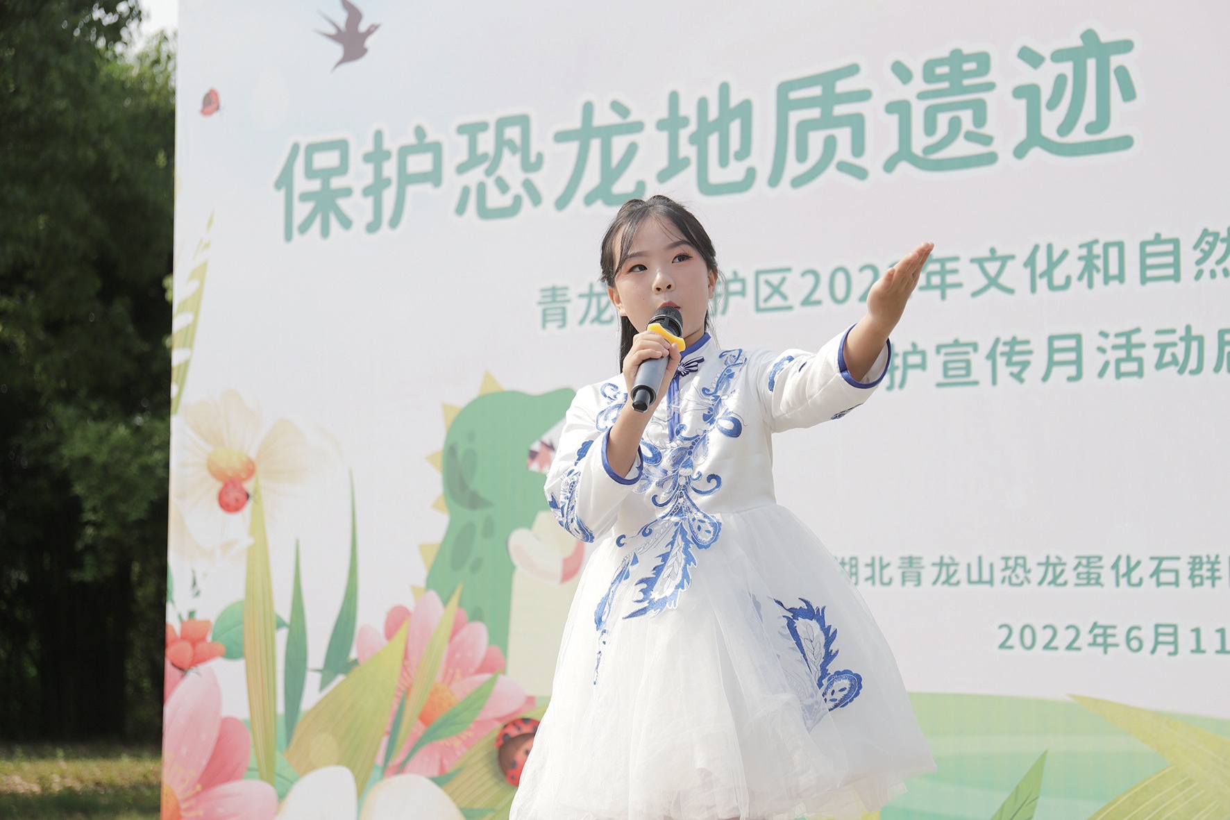 “讓我們行動起來,爭做恐龍地質(zhì)遺跡保護的小衛(wèi)士,像保護眼晴、愛惜生命一樣保護好恐龍地質(zhì)遺跡,不偷挖、盜挖恐龍蛋,不交易、買賣恐龍蛋……”小記者代表李華博、李坤陽現(xiàn)場發(fā)出保護文化和自然遺產(chǎn)倡議,希望現(xiàn)場的小記者們行動起來,爭做恐龍地質(zhì)遺跡保護的小衛(wèi)士、恐龍地質(zhì)遺跡保護的宣傳員和現(xiàn)代科學知識的傳播者,傳播珍愛地球,保護環(huán)境的理念,自覺踐行“綠水青山就是金山銀山”的發(fā)展理念,共建人與自然和譜共生的美麗家園。