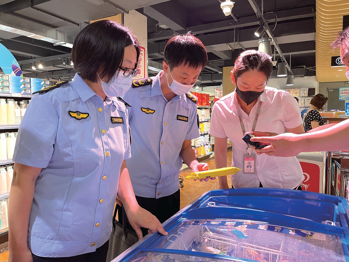 執(zhí)法人員對商超、街邊店雪糕經(jīng)營明碼標(biāo)價行為進(jìn)行排查。