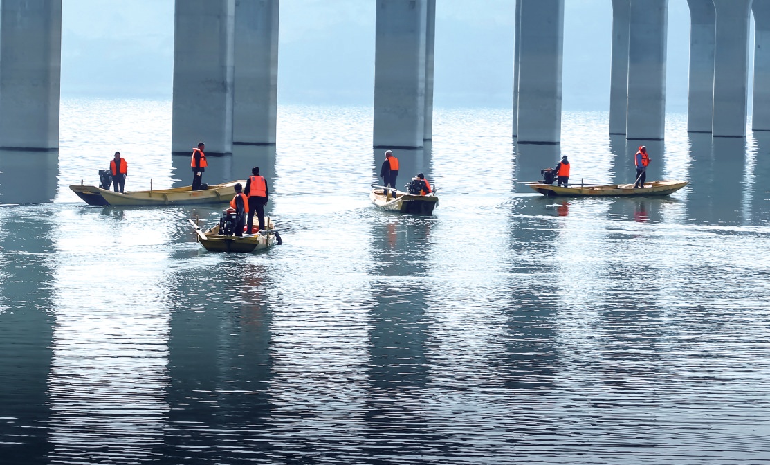 攝影獲獎(jiǎng)作品《漢江清飄隊(duì)》作者/魏長華