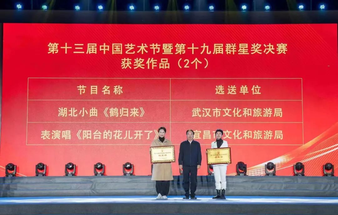▲頒發(fā)第十三屆中國藝術(shù)節(jié)暨第十九屆群星獎(jiǎng)決賽我省獲獎(jiǎng)作品獎(jiǎng)牌