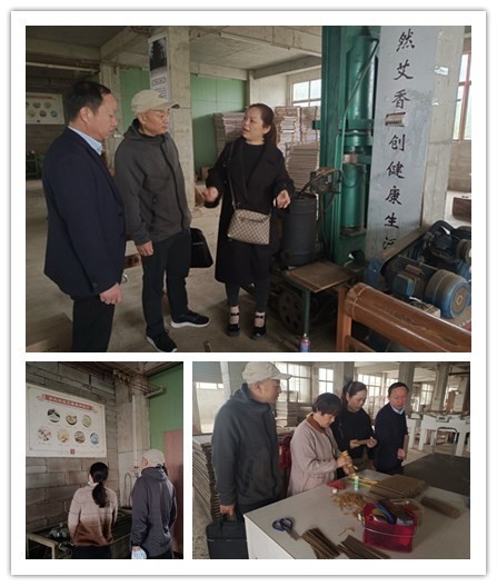 圖為市委統(tǒng)戰(zhàn)部副部長(zhǎng)李均亮、市僑聯(lián)主席周子歡一行到“呂氏艾香”車間現(xiàn)場(chǎng)參觀