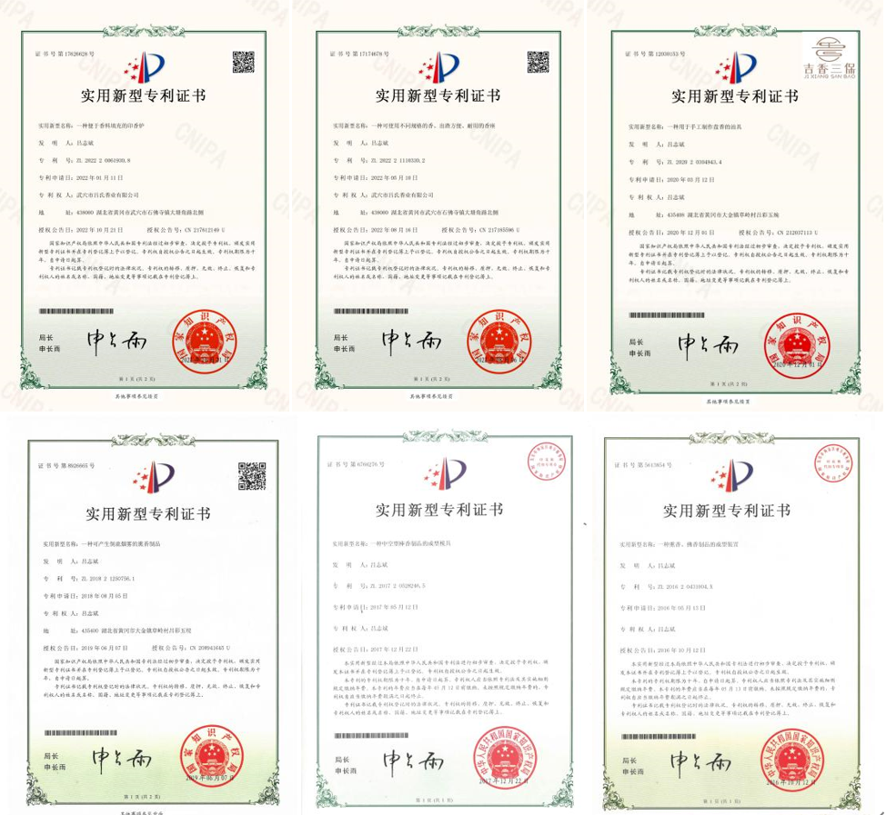 圖為呂志斌在制香領(lǐng)域榮獲多項(xiàng)國(guó)家發(fā)明專利