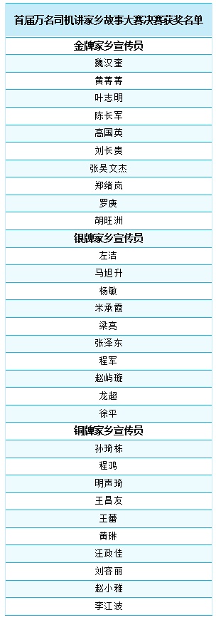評委對決賽選手給予高度評價(jià),“荊楚大地文化璀璨,人杰地靈,司機(jī)是連接荊楚大地所有物理空間和精神空間的重要的載體。30位司機(jī),30張名片給我們講了30個(gè)故事。有講述百年黨史的紅色故事,有展現(xiàn)家鄉(xiāng)人文景觀的綠色故事,有歌唱家鄉(xiāng)發(fā)展的金色故事。他們是家鄉(xiāng)故事最好講述者,是地方文化最佳的傳播人。他們用司機(jī)的方式講述湖北故事、中國故事?!?/p>