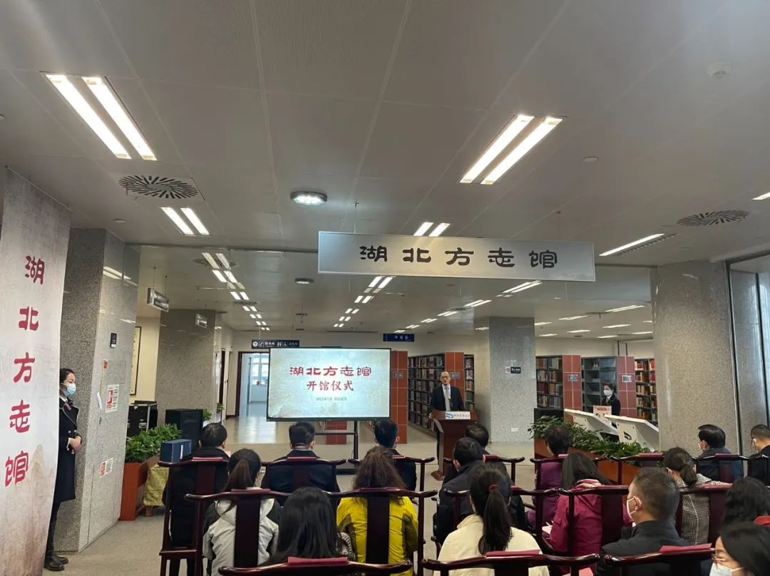 儀式上,省圖書館負(fù)責(zé)人向大家介紹湖北方志館的基本情況,并引導(dǎo)大家參觀方志館規(guī)章制度、宣傳展覽、方志館分區(qū)及數(shù)字方志館建設(shè)情況。全新開放的湖北方志館是由省圖書館將現(xiàn)藏方志文獻(xiàn)和原省方志辦移交的方志文獻(xiàn)進(jìn)行集中統(tǒng)一分類、編目、上架,并加強(qiáng)基礎(chǔ)設(shè)施建設(shè)后,建成的集收藏、展示、開發(fā)、利用方志文獻(xiàn)于一身的公共文化空間。場館位于省圖書館5樓,總面積約3000平方米,現(xiàn)藏舊志3300余種5500余部,歷代湖北方志基本完備;現(xiàn)藏新修方志12000種、20000余冊,基本覆蓋了新中國成立后各個(gè)地、市、縣不同時(shí)期所修志書,既有綜合志,也有如水利、民政、交通、教育等專業(yè)志。館內(nèi)設(shè)置方志文獻(xiàn)借閱專區(qū)、讀者服務(wù)區(qū)、方志數(shù)據(jù)電子查詢區(qū)、文獻(xiàn)研究成果展區(qū)等,為讀者提供借閱、參考咨詢等服務(wù)。
