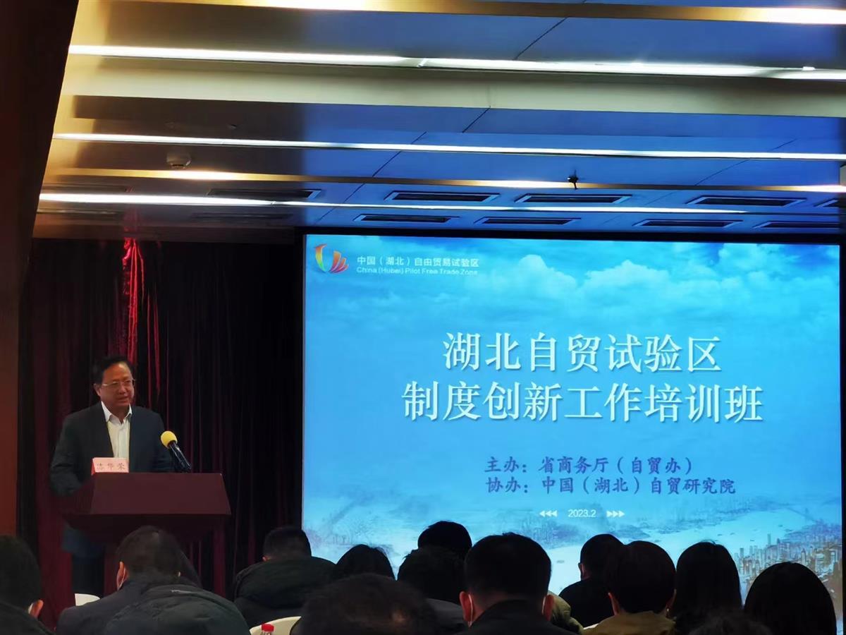 據(jù)介紹,湖北自貿(mào)試驗區(qū)工作領(lǐng)導小組成員單位,武漢、襄陽、宜昌自貿(mào)片區(qū)及所在市區(qū)的有關(guān)部門負責人等百余人參加培訓。會上,省自貿(mào)辦還發(fā)布了《湖北自貿(mào)試驗區(qū)2023年制度創(chuàng)新工作指引》,從擴大雙向開放、推動科技強省、助力產(chǎn)業(yè)發(fā)展、優(yōu)化營商環(huán)境等四大方面,系統(tǒng)籌劃今年湖北自貿(mào)區(qū)制度創(chuàng)新工作的重點方向。