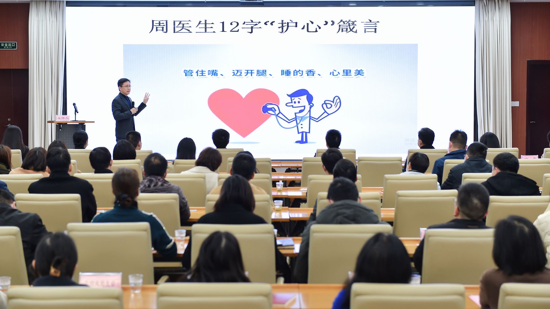 啟動儀式在省人社廳年輕干部、湖北省學雷鋒最美文藝志愿者表演的快板書《和美荊楚展新顏》中拉開了序幕。啟動儀式上,來自華中科技大學附屬同濟醫(yī)院心血管內科教授周寧為大家進行了慢性病預防健康科普講座,他結合機關干部長期伏案工作、缺乏體育鍛煉的實際情況,圖文并茂地講解了心血管疾病的識別、預防、治療等內容,對大家提出合理膳食、適量運動、戒煙限酒、調整心態(tài)等建議。
