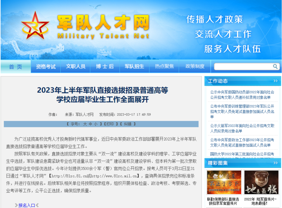 2023年上半年直招軍官今天(3月22日)開(kāi)始報(bào)名,